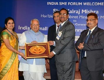 India SME 100 Award Was Presented By Mr. Kotiswaran (Ex. Director BOI) In Presence Of Smt. Sumitra Mahajan - Loksabha Speaker & Shri. Kalaraj Mishra (Union Minister MSME) At Mumbai On 2/8/2014.