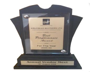 Best Performance Award By Kirloskar Brothers Kirloskarwadi, During Vendor Meet On 18.8.2009